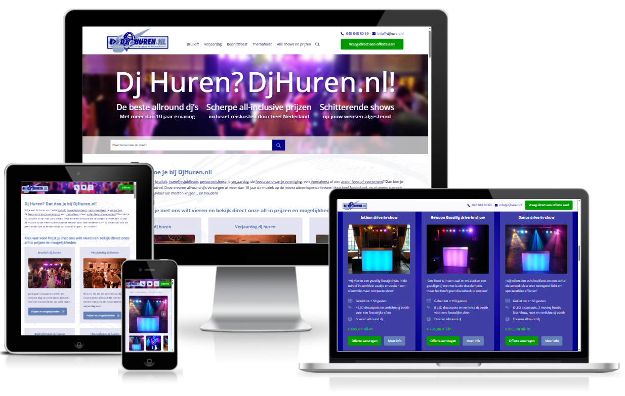 Even though I’ve rebuilt the entire website several times already, the fundament is still the same. DjHuren.nl is a prime example of a great lead generation website and generates hundreds of inquiries per year.