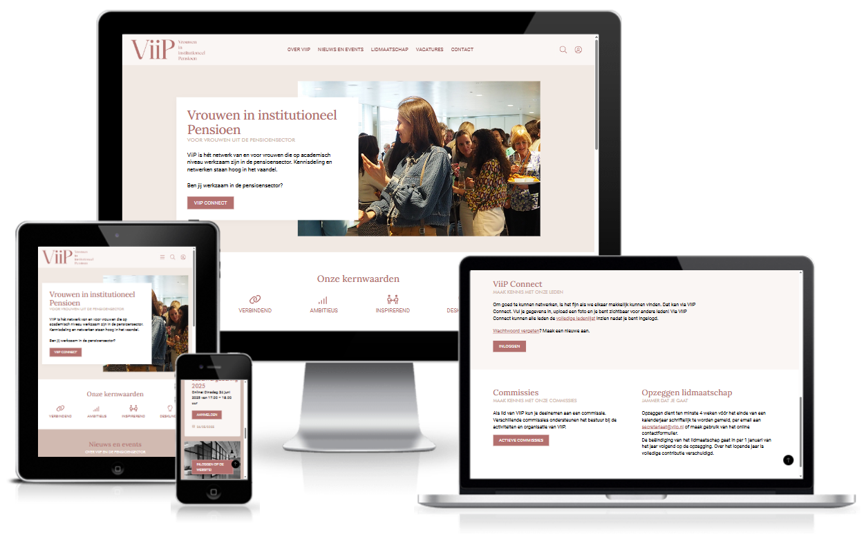 ViiP is a network of women working at an academic level in the Dutch pension sector. Their new website needed a feminine yet professional look that fits well with their new corporate identity.